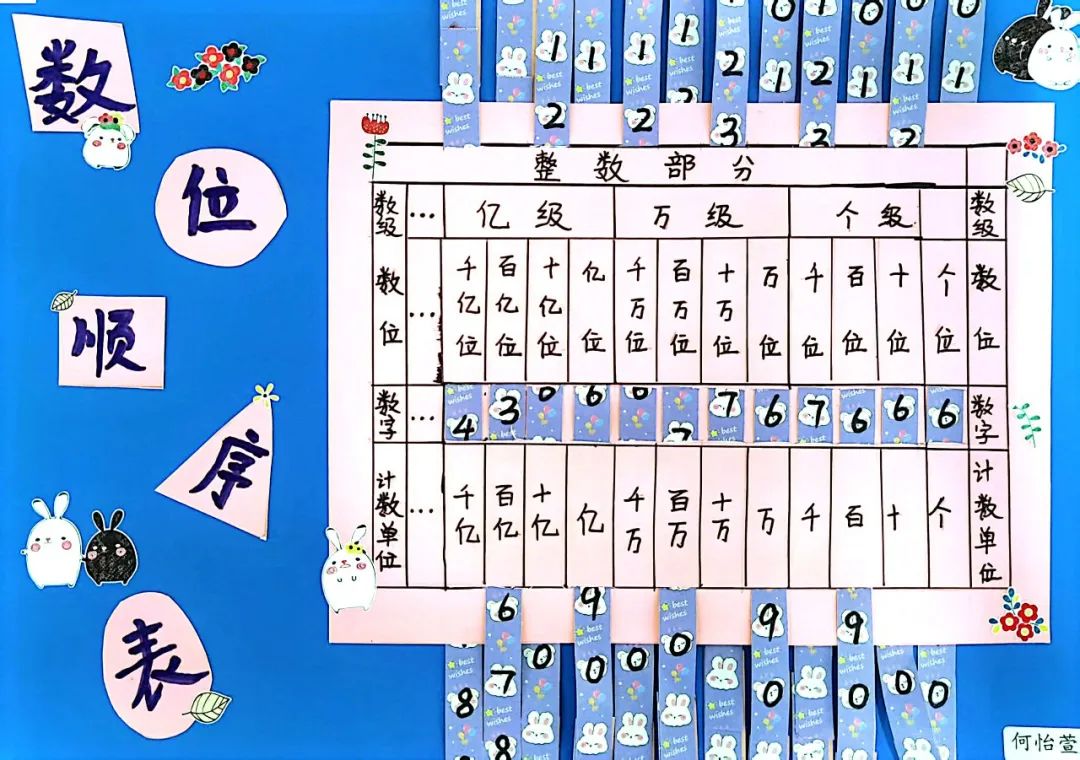 让数位顺序表“动”起来,四年级的同学们发挥他们的聪明才智,制作出很多可以“动”的数位顺序表。在制作过程中,不仅加深了对知识的理解,还巩固所学知识。