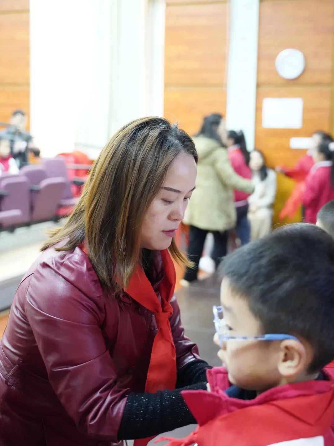 激昂的歌声过后,活动进行到了第二项。学生发展中心郑文静主任宣读了第二批少先队员的名单。新队员们激情澎湃,在听到自己的名字后,眼睛里是难以掩饰的激动。同学们上台后,黄哲昙副校长、郑文静主任、聂芹副主任、任课老师以及班主任为新队员佩戴红领巾,老师们对新队员敬礼表示祝贺,新队员对老师们还礼,表示感谢。在热烈的掌声中欢迎他们进入到这个大家庭,整个流程紧凑而又有序。