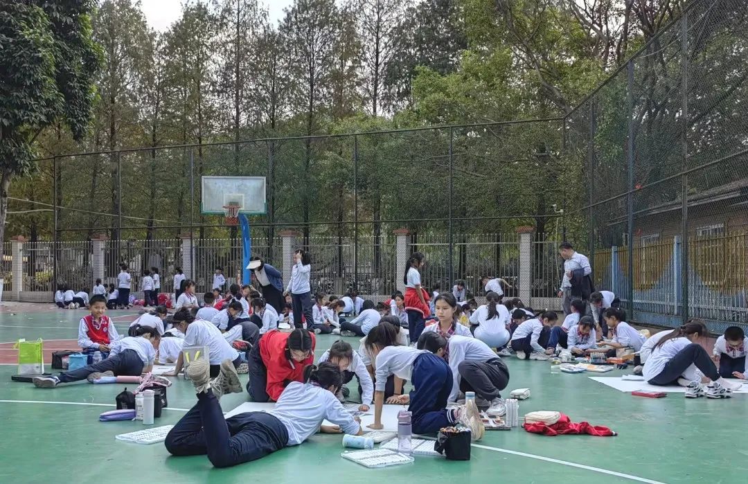 12月15日,第十五届“云溪杯”校园艺术节现场绘画比赛在校内小操场进行。