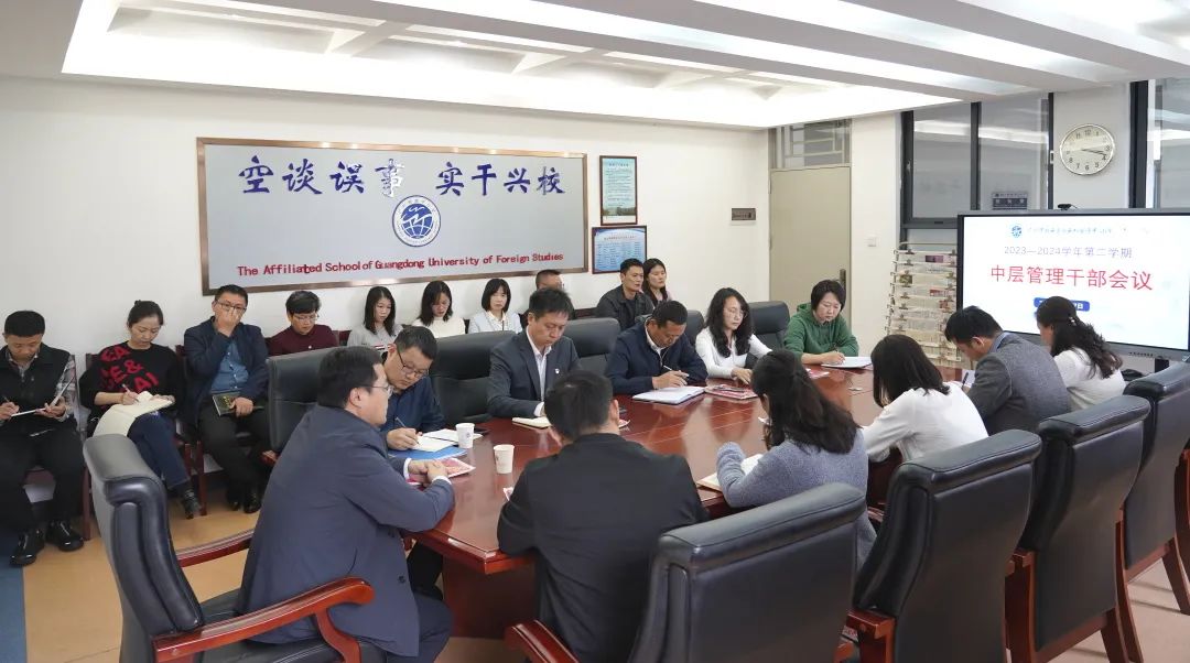 2024年2月17日下午,我校在启航楼三楼第一会议室召开新学期管理干部会议,广外教育合作与发展中心党委书记、主任孙远雷,副主任余海波,我校中层以上管理干部参加了会议。会议由我校党支部书记、校长方建军主持。