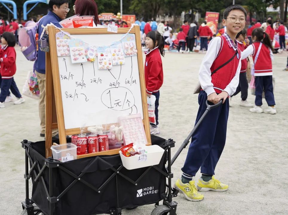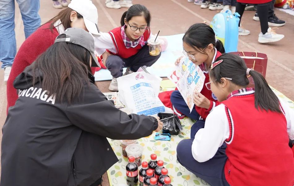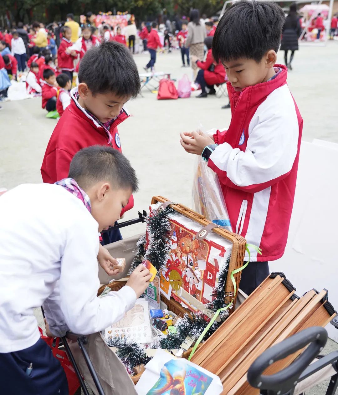 部分摊位还支持扫码支付。老师和家长们也被孩子们的热情所感染,纷纷加入到逛集市的队伍中来,现场热闹非凡。