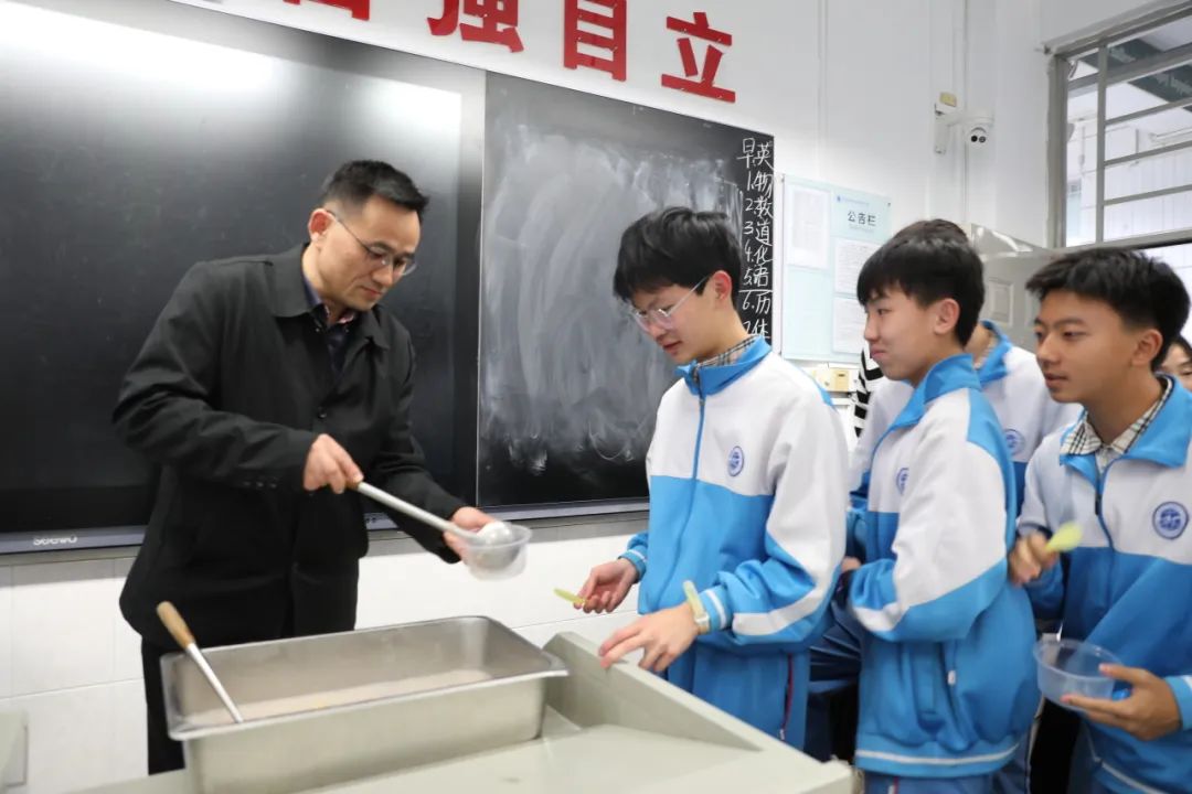 九年级的同学则在教室里品尝汤圆,由部分校领导及中层干部为同学们送去元宵节的关怀与寓意美好的暖心汤圆,祝愿毕业班学子生活如意、学业圆满!
