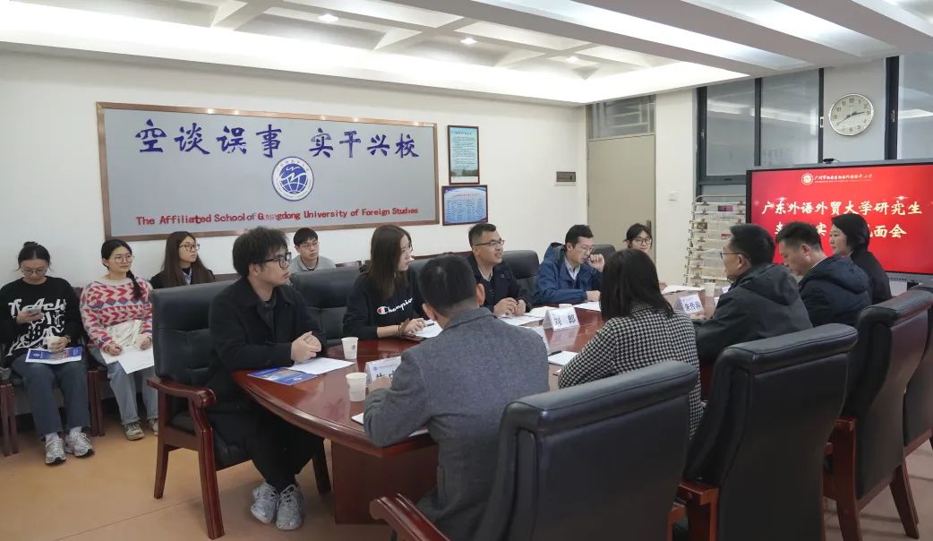 实习磨砺促成长,赋能教育启新航。2024年3月4日,我校在第一会议室举行广东外语外贸大学第十届研究生支教团实习生见面会。参加会议的有:广东外语外贸大学团委刘郎书记、赵继伟副书记、吴怡老师,我校方建军校长、朱传兵副书记、黄秋敏副校长、朱中振校长助理、中学英语科组长郑丹娜、语文科组长吴冠仪,以及8位研究生支教团实习生。会议由校办副主任陈丽丽主持。