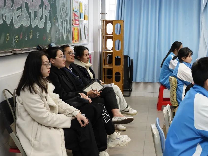 在此次教学交流活动中,Lindsay老师携雷丁教育学硕士学生深入八年级两个班数学课堂听课,并与薛峰老师和数学教研组展开交流,探讨中英不同文化背景下发展学生核心素养的教学方法与实践。