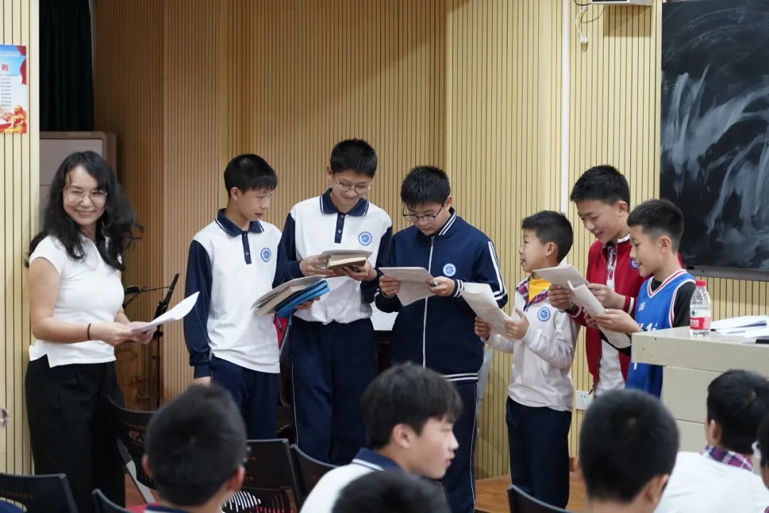 2023年3月13日下午,整本书阅读的第一堂课在我校音乐室拉开序幕。蔡欢副校长亲自给小学五年级和初一年级共50余名学生授课,30余名老师和实习教师听课。广外教育合作与发展中心的高宇老师、江建老师、潘李南老师也亲临现场观摩。