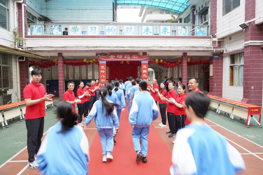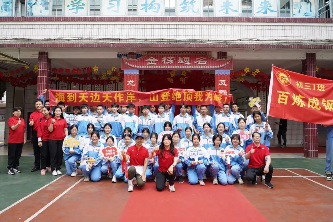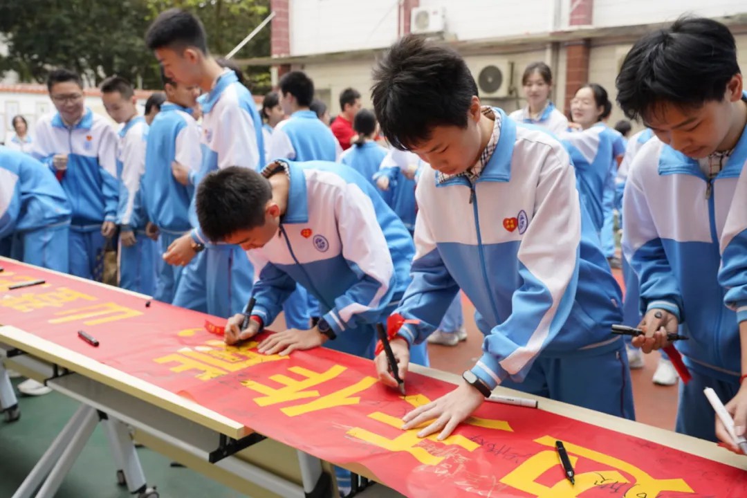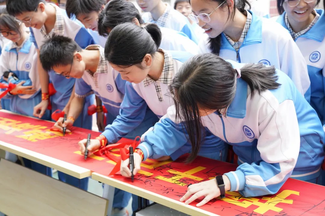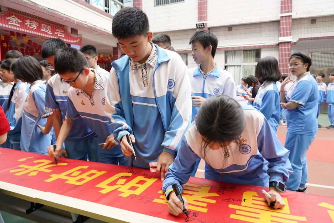 句句叮咛语,片片师爱心,学生们收到了老师们的勉励和祝福。老师们宣誓与学生同心向上,携手奋战一百天,“甘将心血化时雨,润出桃花一片红。”