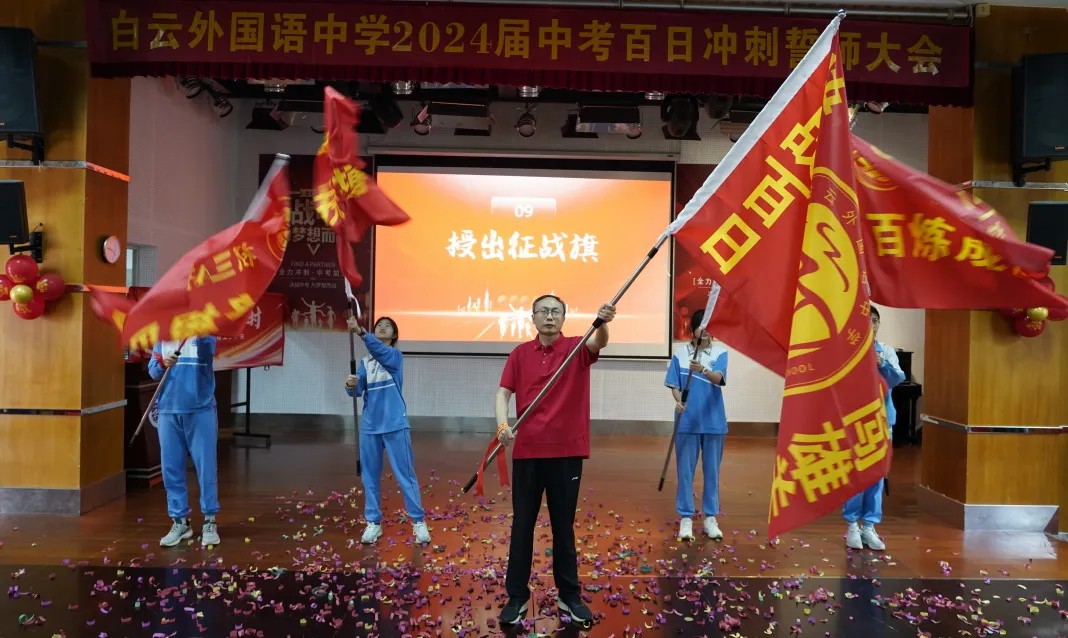 志当存高远,梦想永无畏。为切实抓好初三年级中考考前100天的教育教学工作,充分调动全体初三级师生工作、学习积极性,进一步激发师生的工作和学习热忱,更好地备战中考,2024年3月22日,广州市白云区白云外国语中学举行了中考百日冲刺誓师大会和白云山摩星岭许愿之旅。我校各级领导、家长代表及全体初三级师生参加了活动。