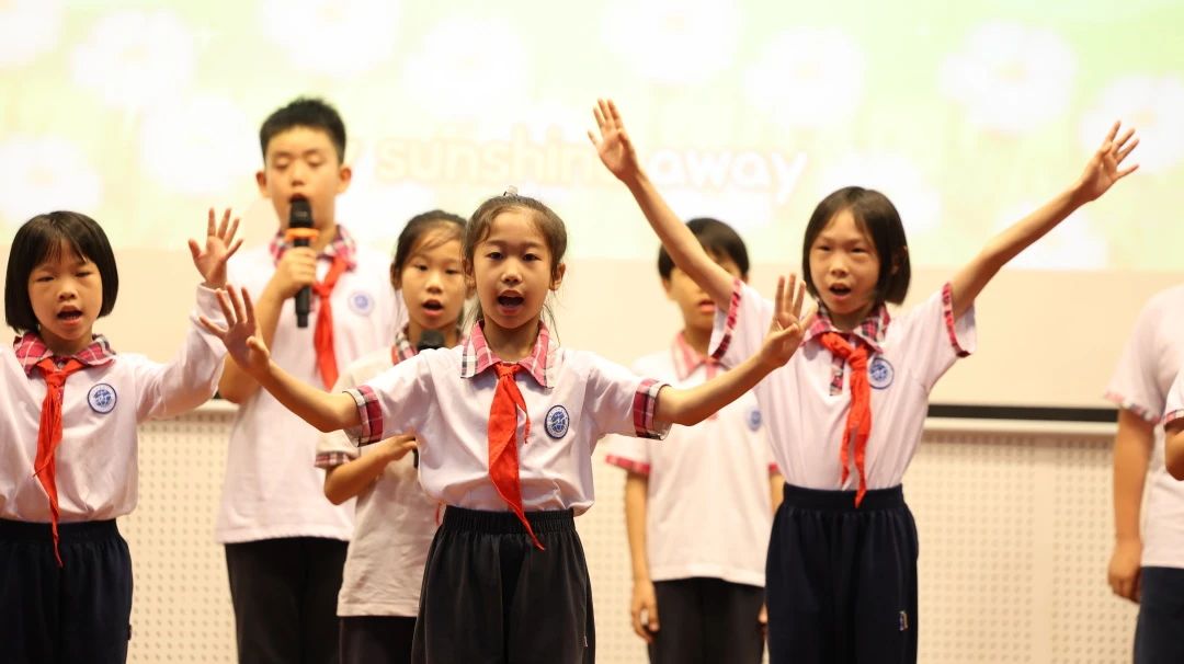 4月12日下午,全体一年级学生汇聚学校云山礼堂举行英语童谣展演。各班同学熟练唱诵英语童谣,配上生动的动作,快乐演绎,赢得了在场老师和同学们的热烈掌声。歌曲动感活泼,表演形式丰富多彩,有歌谣律动,有舞台剧表演,生动形象趣味横生。英语歌谣唱诵出同学们对学习英语的无限热情。