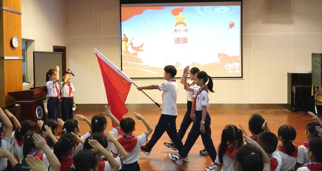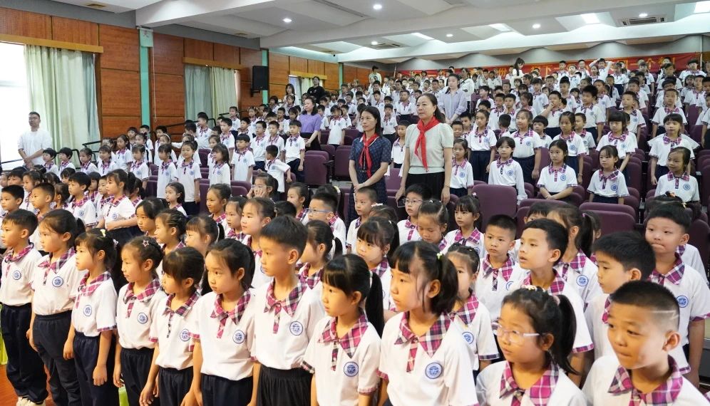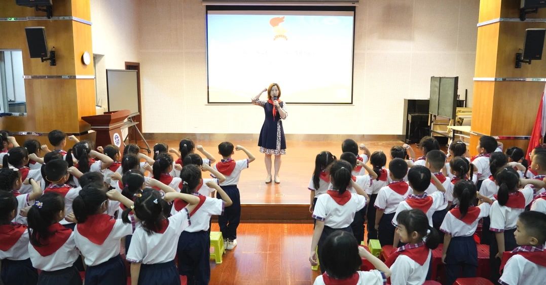 黄哲昙副校长宣读了组建一年级少先队组织的决定并讲话。黄哲昙副校长表达了对新队员的祝福,并期盼队员们秉持少先队员的优良作风,从小学先锋,长大做先锋,未来能成长为新时代下的共产主义接班人。同时也鼓励还未加入少先队员的同学们继续努力,严格要求自己,向少先队员的标准靠近。