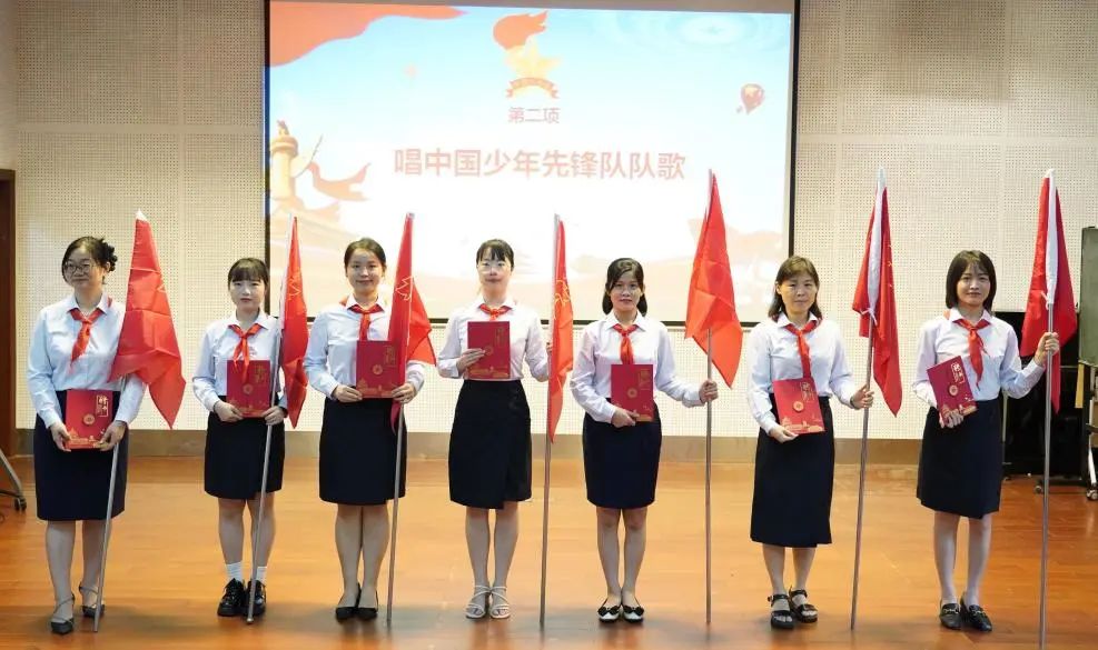 一年级七个中队组建完毕。黄哲昙副校长为中队辅导员授聘书,学生发展中心郑文静主任、聂芹副主任为新建中队授中队旗并为新中队辅导员佩戴红领巾。七位辅导员将不负大队的嘱托,不忘初心,砥砺前行。