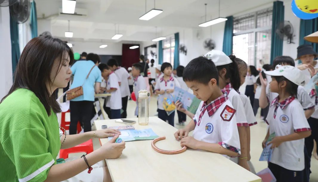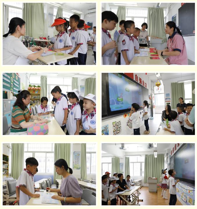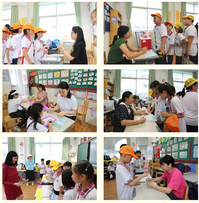 6月28日下午两点,游园活动在一、二年级各班课室及校内操场如火如荼地开展起来了。在家委的带领下,一、二年级各班学生分组有序前往各闯关区和体验区进行活动。游园闯关活动的每个模块均为独立区域,分别设立游戏区和等候区,每个区域由负责老师进行评价和管理工作,楼层管理员和义工家长负责协助维持纪律。