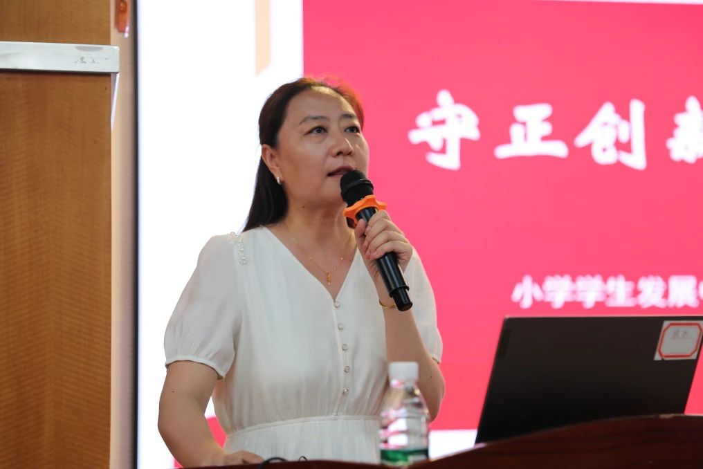 小学学生发展中心郑文静主任从学生常规管理、班主任队伍建设、少先队重点工作等方面布置新学期学生德育工作,强调要建立密切、融洽、信赖的家校关系和师生关系,保障学生身心健康,实现让每个孩子都发展的育人目标。
