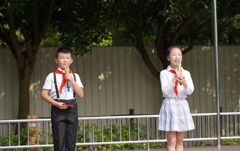 开学典礼由四(1)班刘炫博和六(6)班王之翊同学主持。