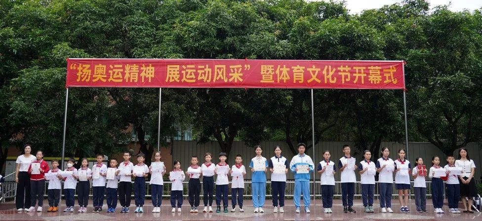 为了弘扬奥运精神,增强民族自豪感和自信心,帮助学生树立加强体育锻炼、立志报效祖国的坚定信念,培养学生德智体美劳全面发展。2024年9月23日,白云外国语中小学举行了“扬奥运精神 展运动风采”暨体育文化节开幕升旗仪式。