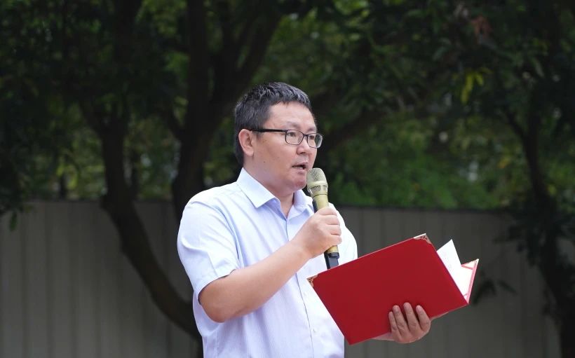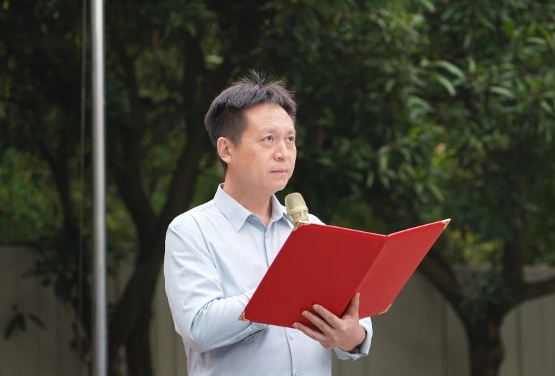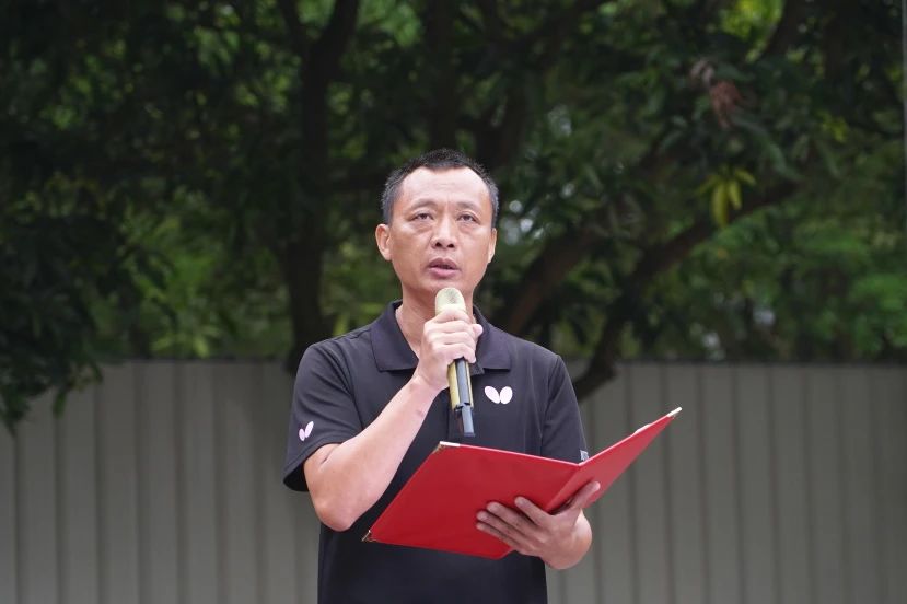 朱传兵副书记进行国旗下主题讲话。首先,朱副书记强调体育文化节作为学校特色活动是贯穿整个学期乃至全年的持续性教育过程,旨在培养师生终身运动的习惯和爱好。他深入阐述了体育活动的育人价值,指出体育运动不仅能够增强体质、感受快乐,还能锤炼意志、健全人格。他呼吁全校师生将奥运会的激情、专注与梦想融入到日常的学习和生活中,共同推动体育强国战略的实施,预祝本次体育文化节圆满、顺利开展。