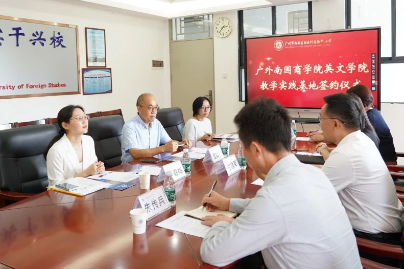院校携手谋发展,实践探索谱华章。2024年11月1日,我校与广东外语外贸大学南国商学院英文学院在启航楼第一会议室举行实践教学基地签约仪式。广东外语外贸大学南国商学院英文学院院长温宾利、副院长李春梅、党总支书记赖敏以及我校党支部书记、校长方建军,党支部副书记朱传兵,副校长黄哲昙参加了签约会议,会议由我校校办副主任陈丽丽主持。