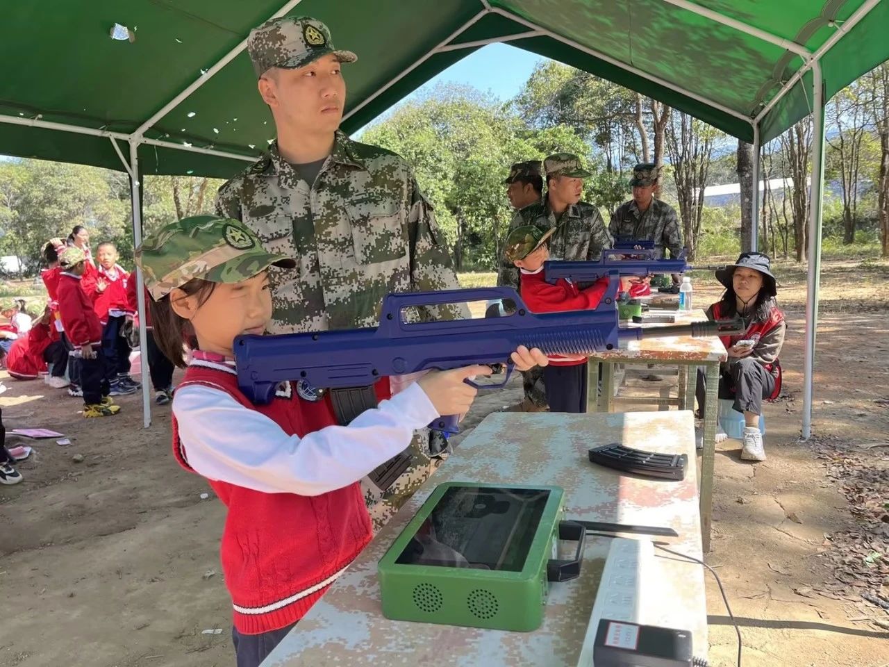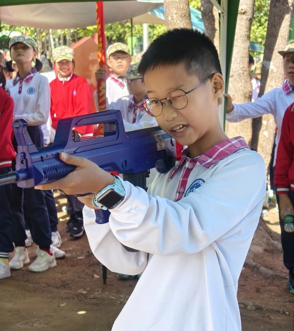 在活动中,同学们亲身体验了军事训练项目,如队列练习、模拟射击、CS竞技体验等,不仅锻炼了身体素质,更培养了团队协作精神和纪律意识。同学们都十分勇敢,每位同学都仿佛化身为小小的探险家,敢于尝试,拼搏进取,笑声不断,紧张刺激的游戏中,孩子们不仅收获了健康和快乐,也增进了同学间的友谊,班级的凝聚力。