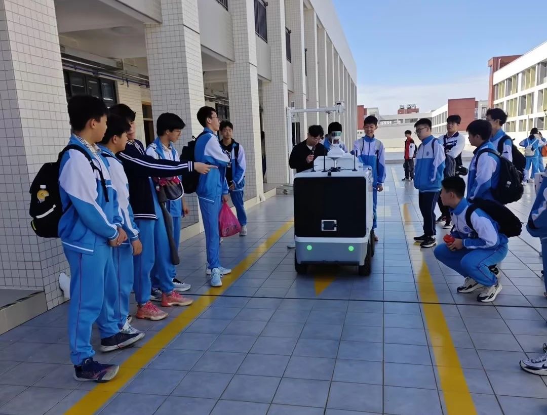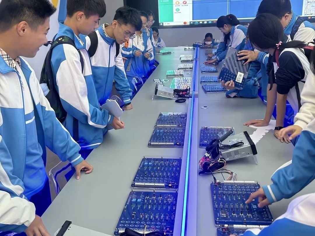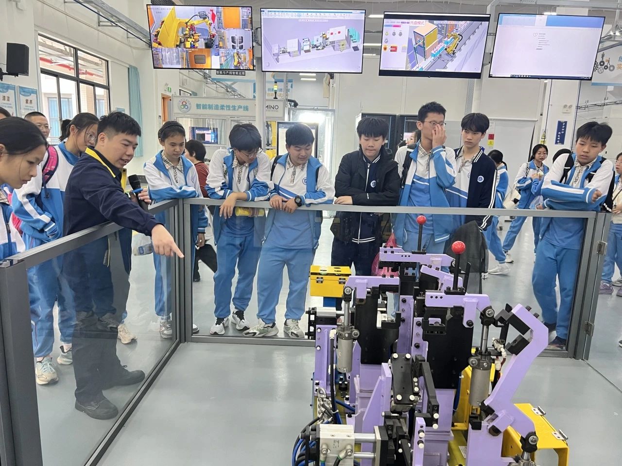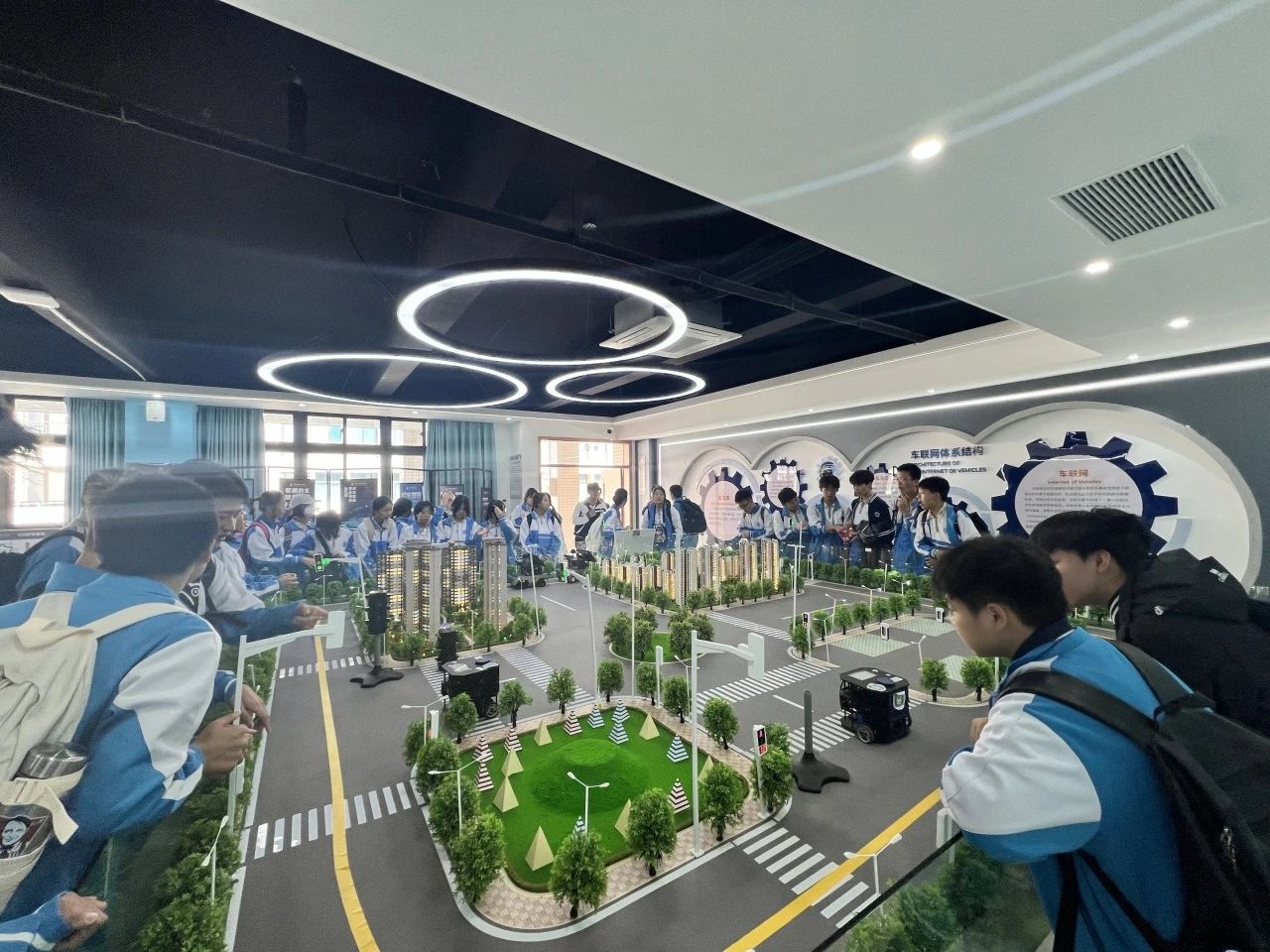 初三的同学们探访了技师学院的实践教学基地。通过参观交通装备系、智能制造系,师生见证了车联网技术的实际应用,了解了其在我国智慧交通领域的重要作用,同学们对智能制造有了直观的认识,更感受到了制造业的创新活力。沉浸式体验747飞机基地线路、智能汽车座舱一体化学习工作站与智慧交通一体化学习工作站,让师生对智能制造业、科技技能领域有了更深入的了解,激励学生努力学习,实现科技强国之路。