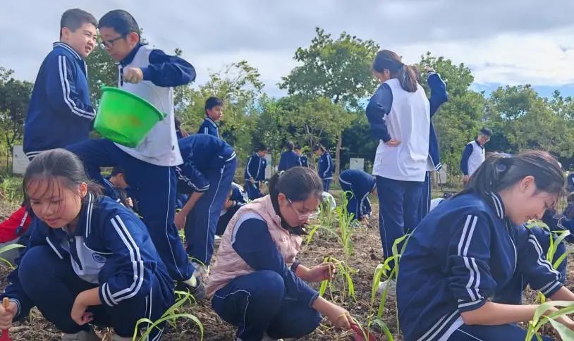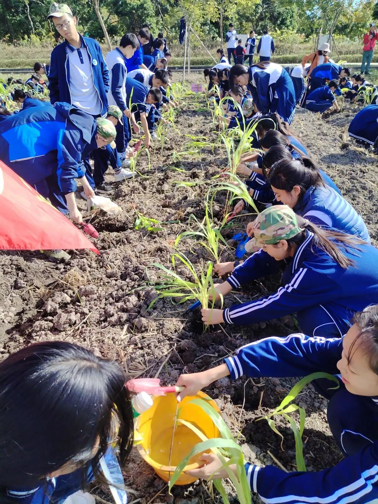 同学们躬耕田野,种植玉米苗。提起小铁锹,手染黄泥土,挖一小坑洞,埋下玉米苗,生长新希望!绿,不仅仅是一把把玉米苗,还是一颗颗亲近自然的心灵。