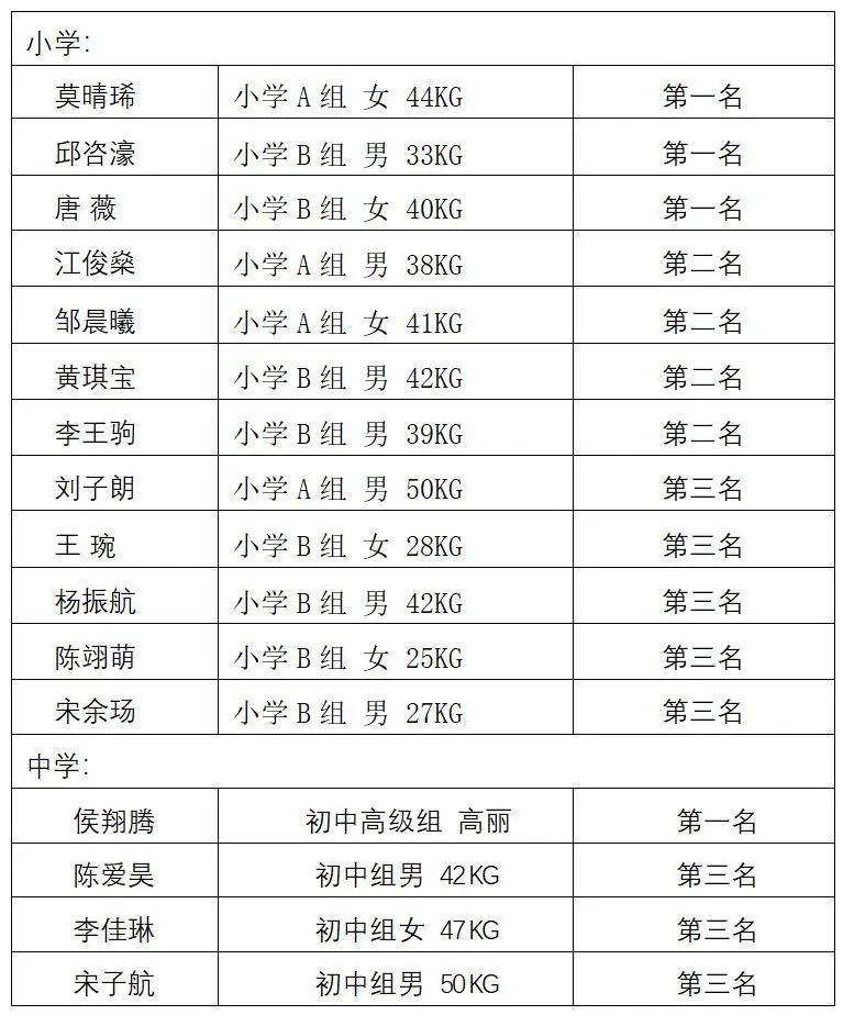 这次比赛由唐晓霞老师和林伟忠老师带队,两位老师认真负责,全力配合,一大早组织学生称重,预热。调动同学们互帮合作,参与管理,对高年级同学进行分工,在比赛之余,协助老师帮弟弟妹妹们做热身、后勤、大本营以及联络员工作,确保孩子安全有序参赛,不错过任何一场比赛,让每个孩子都得到锻炼和提高。
