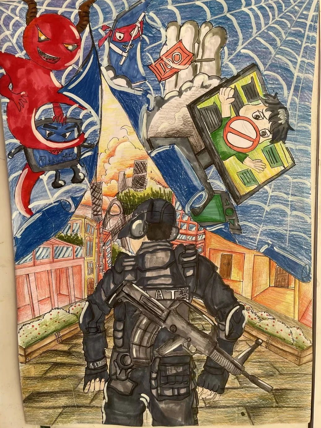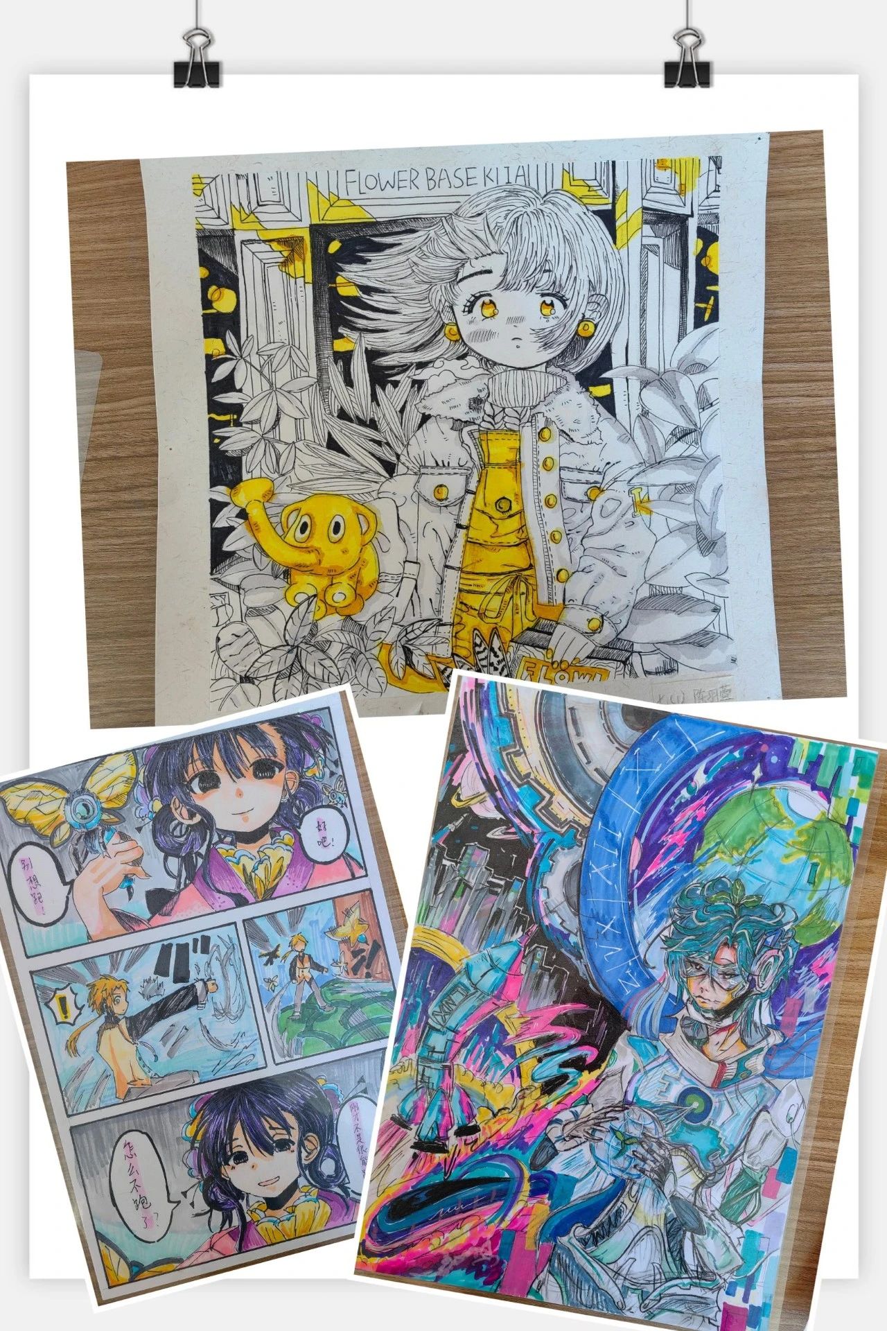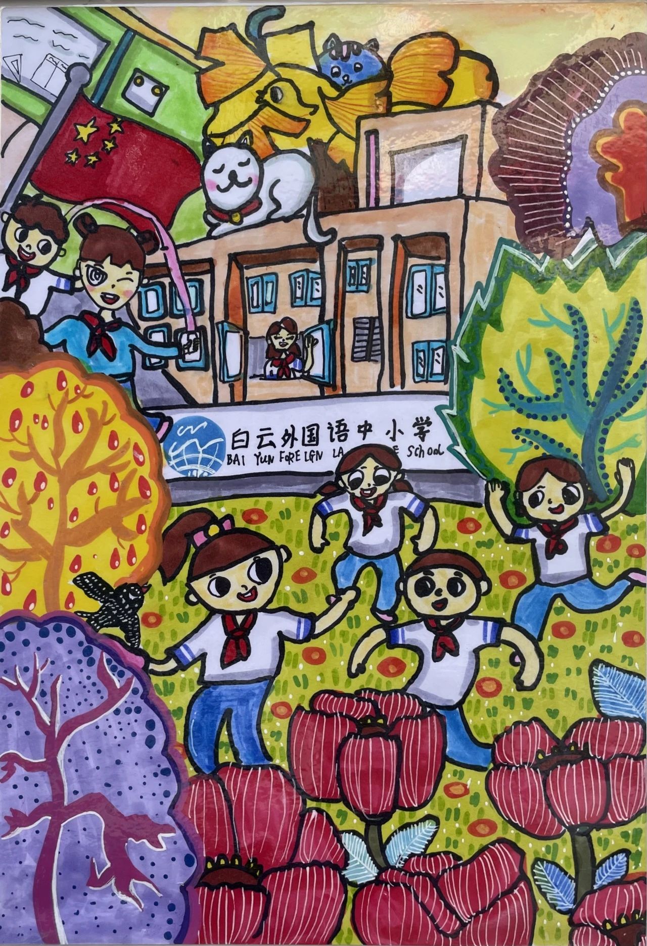 艺术作品类的决赛以“童心童画,描绘未来”为主题,在学校篮球场以现场绘画的形式进行。⼀幅幅主题鲜明、构图完整、⾊彩和谐的精美作品,充分展现出学⽣美好的内⼼世界。