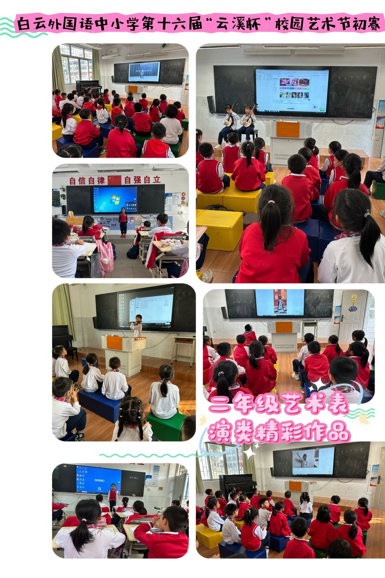 本次比赛“艺术表演类”分班级初赛和校级决赛两个阶段进行。各年级艺术组老师根据本班实际情况随堂组织开展初赛,按分配名额报送优秀选手参加决赛;以类别为单位,按项目和组别统一进行校级决赛,由艺术组老师进行现场打分。