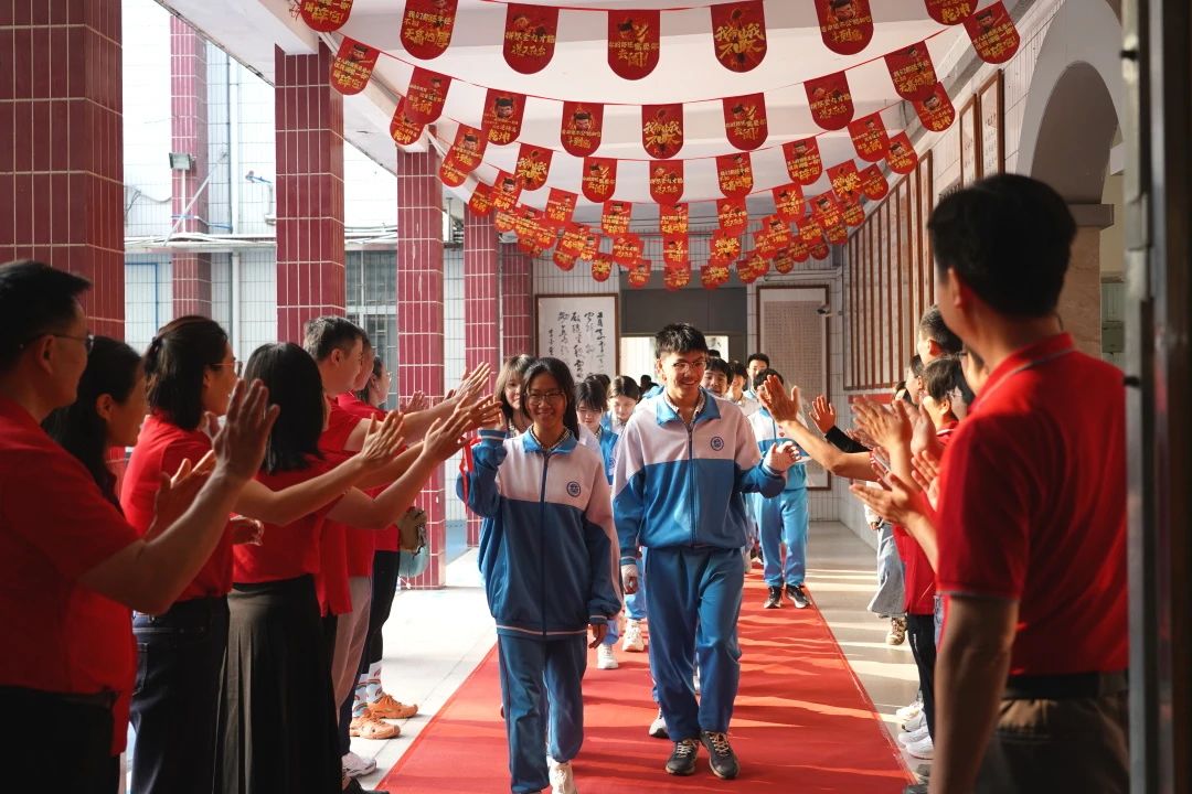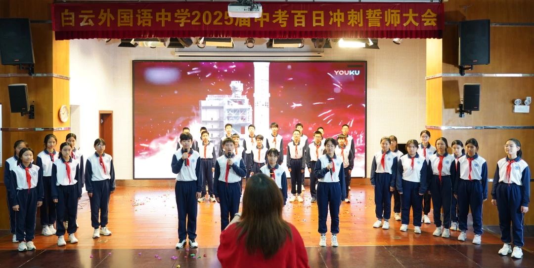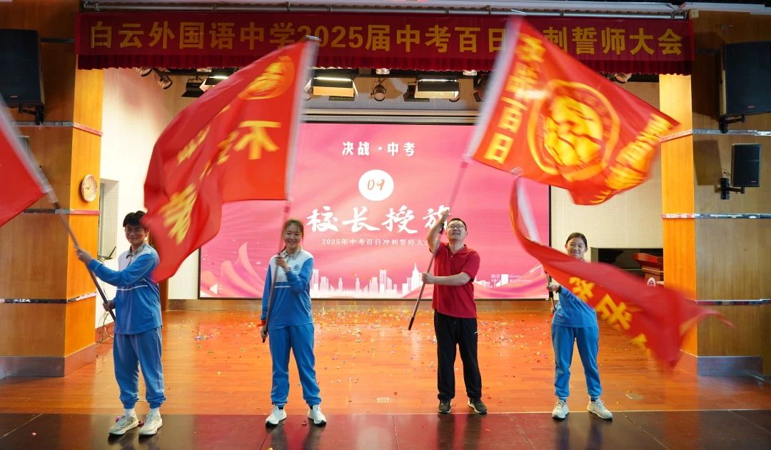 3月21日,白云外国语中学2025届初三学子在师长的见证下,踏上红毯,穿越象征凯旋的“成功门”,拉开百日誓师序幕。