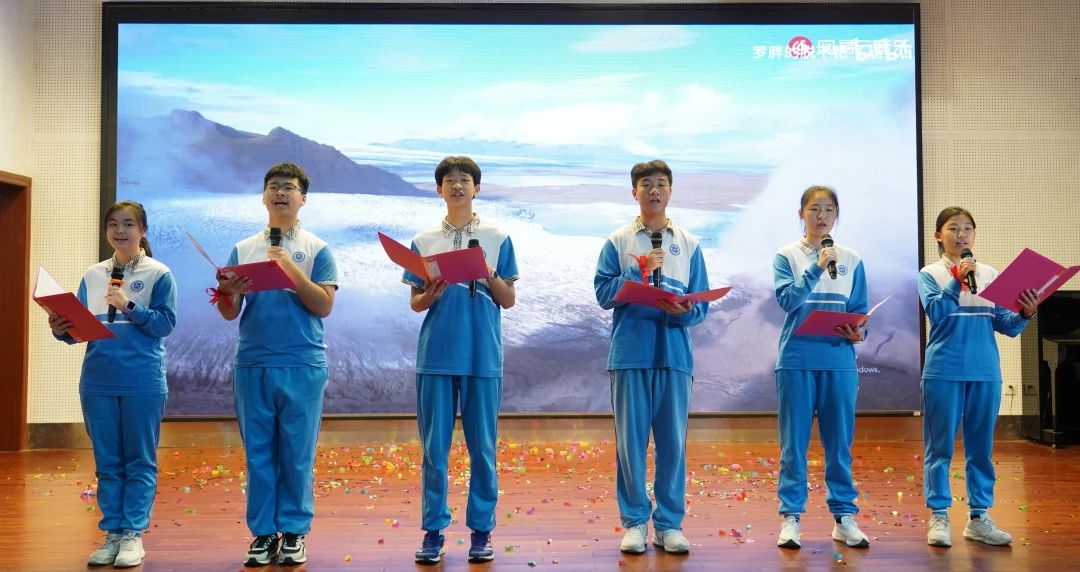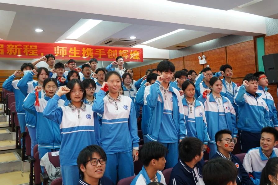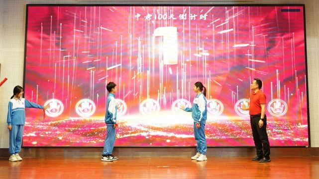 师生并肩,携手向前。初三全体教师集体登台,分学科为学子加油助威,老师们用专业学科术语转换过来的别样的祝福语,赢得孩子们的阵阵掌声和热烈回应!春华秋实,老师们与讲台不离不弃,三年的美好时光,和同学们一起走过。最后百日,定将陪学生并肩作战,携手共进。全体初三教师庄严宣誓:承诺以“以责任为桨,以爱心为帆,倾尽全力,陪伴每一位学子,在最后的一百天里,与孩子们并肩作战,风雨同舟!”