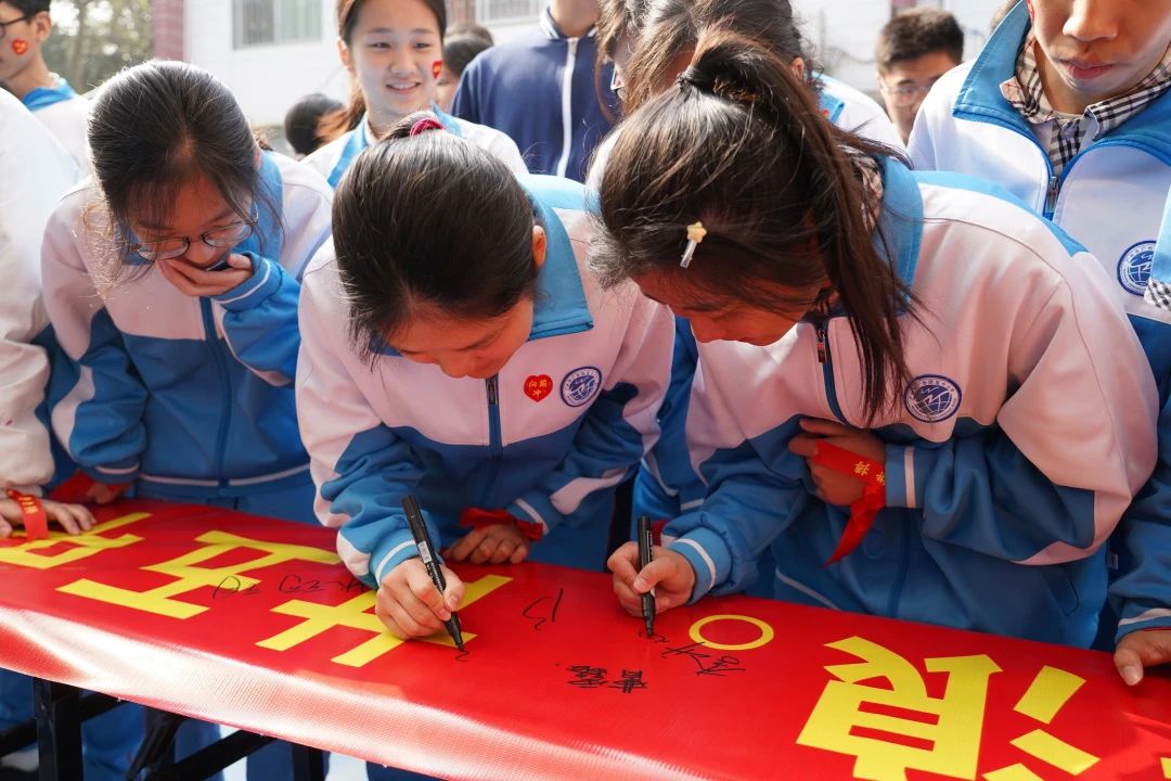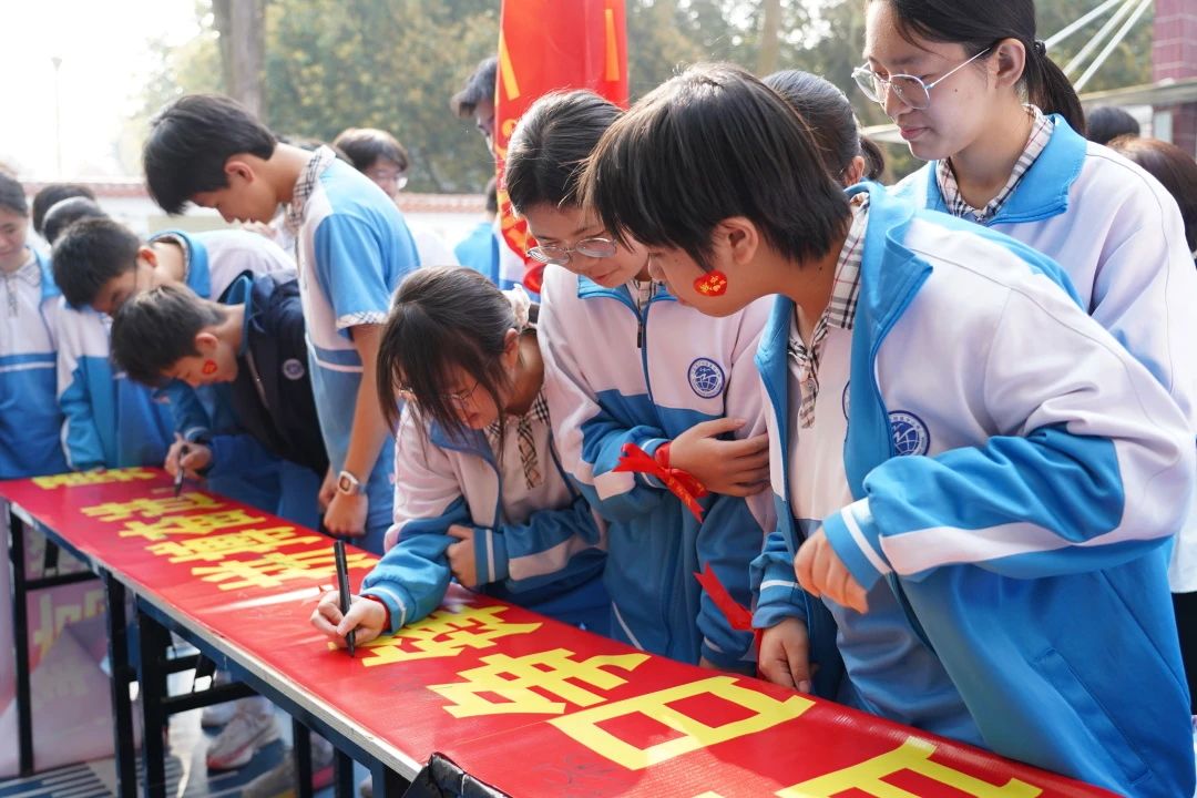 青春呐喊,激情宣誓。各班领誓人带领大家宣誓。同学们铮铮誓言,激情澎湃,慷慨激昂。表达了美好的憧憬,展现出青春的豪迈!带着激动的心情,庄严接过校长递送的旗帜。这面旗帜不仅代表着荣誉和责任,也象征着全体师生的共同愿望和决心。当旗手们摇动旗帜时,同学们欢欣鼓舞,高呼加油。每一个呐喊都映射着坚定和勇气!