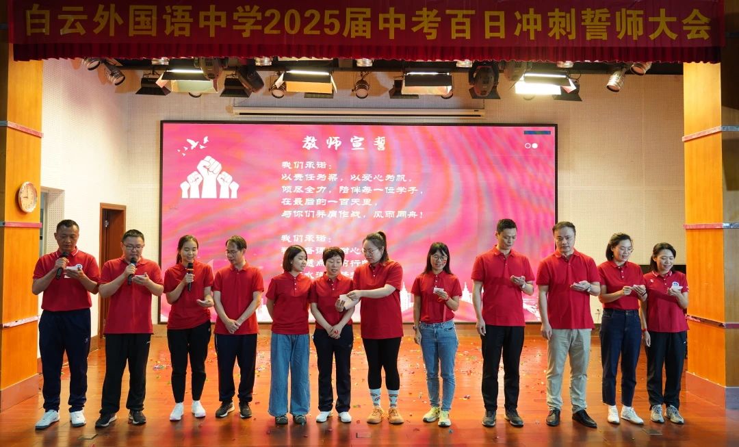 百日冲刺的号角已响彻云霄,白云外国语中学2025届学子将以“千磨万击还坚劲,任尔东西南北风”的执着,以“千淘万漉虽辛苦,吹尽狂沙始到金”的勤勉,以“大鹏一日同风起,扶摇直上九万里”的气势,在书山题海中劈波斩浪,在今夏七月书写青春华章!