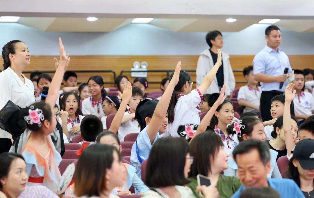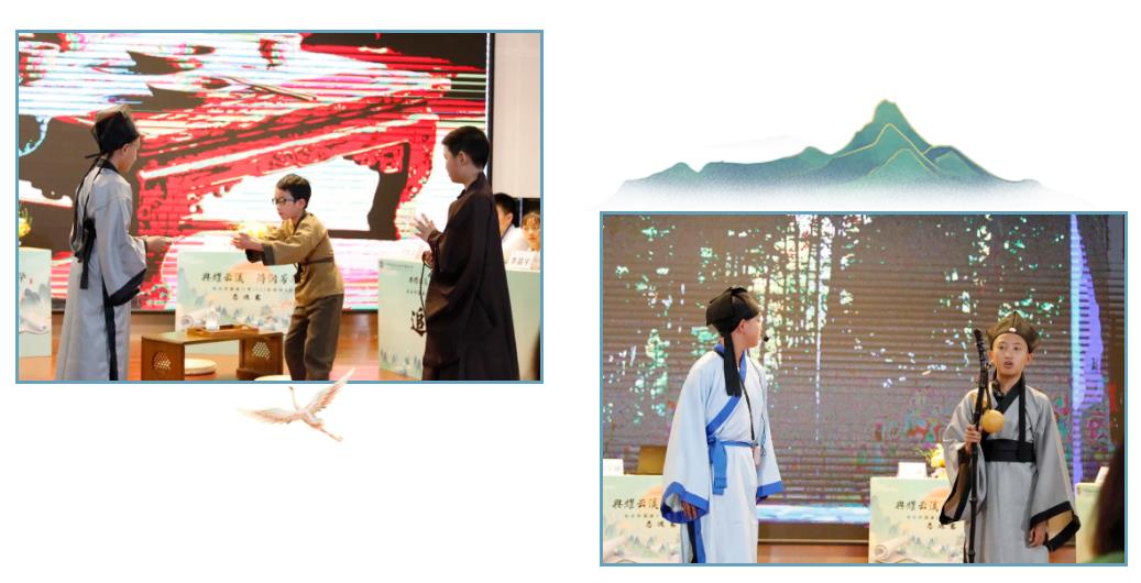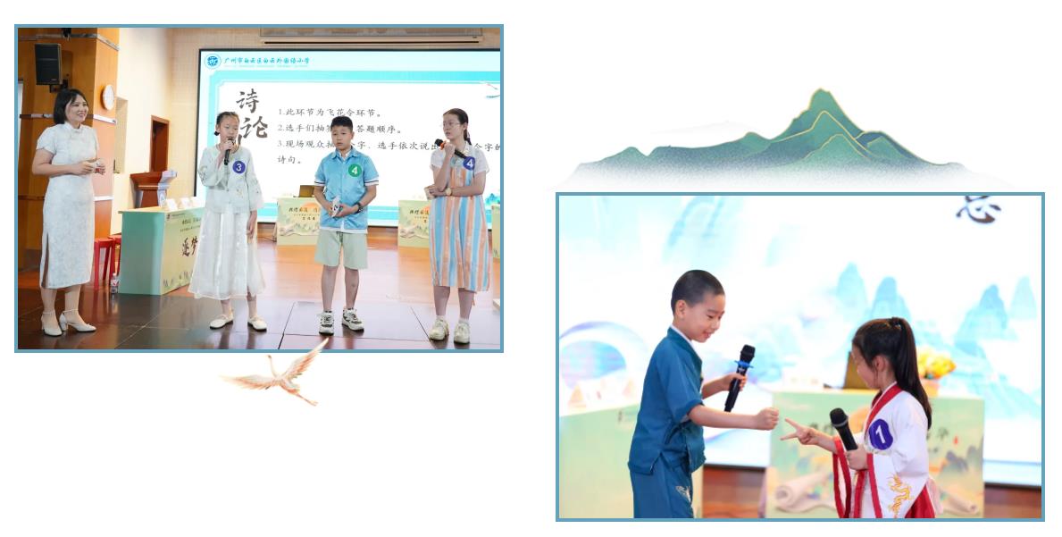 亲子互动环节“共沐诗香”,家长与孩子们共同完成“春江水暖鸭先知”“醉里挑灯看剑”“回眸一笑百媚生”的诗意竞猜。创意默契的演绎,妙趣横生的互动,使礼堂瞬时成了欢乐的海洋。