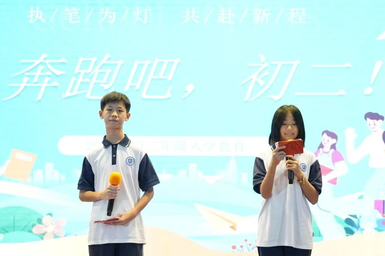 扬帆起航开学季,桃李芬芳待日新。8月29日上午,继2025年素质教育训练开营仪式后,我校在云山会堂隆重举行初一年级新生入学教育会。朱传兵副书记、黄秋敏副校长、初一年级组全体教师及学生共同参加,会议由级长肖梅玲主持。