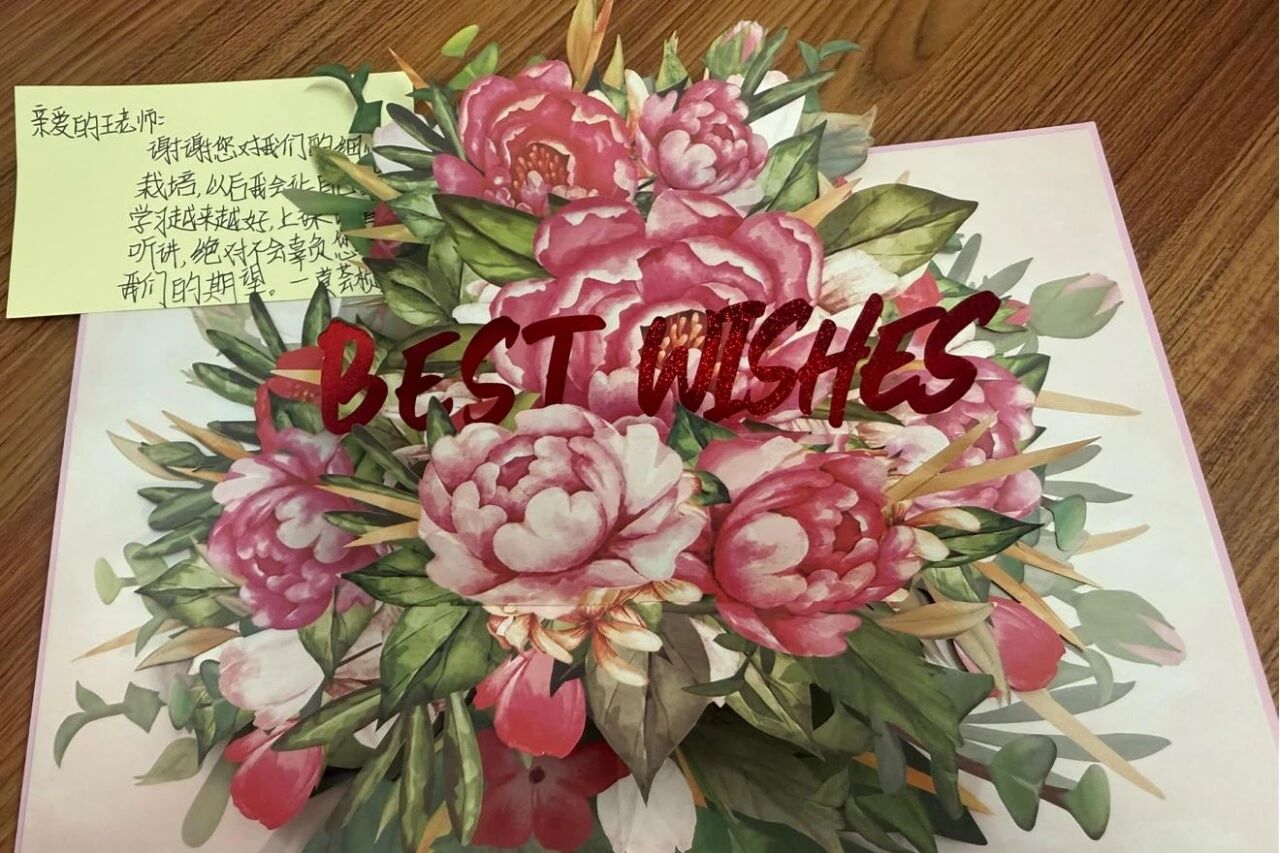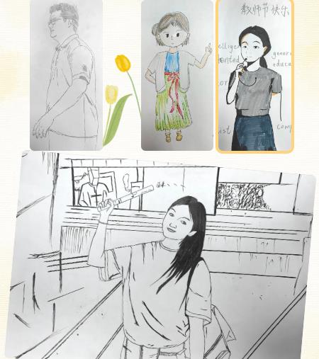 师恩难忘,同学们以情为墨、以心为纸:书信里的一句祝贺、贺卡与黑板上的一幅画作、诗歌里的一段抒怀,皆是千言万语凝聚而成的感恩之语。
