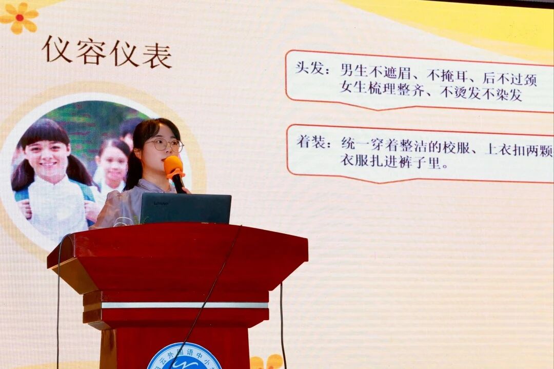 开学初,为帮助学生快速适应新学期校园生活,涵养文明素养,白云外国语小学各年级隆重举行了新学年学生集会活动。年级集会由年级组长统筹安排并组织开展,学生发展中心郑文静主任、聂芹副主任参加了学生集会。