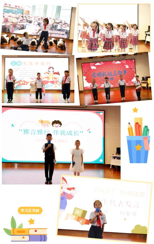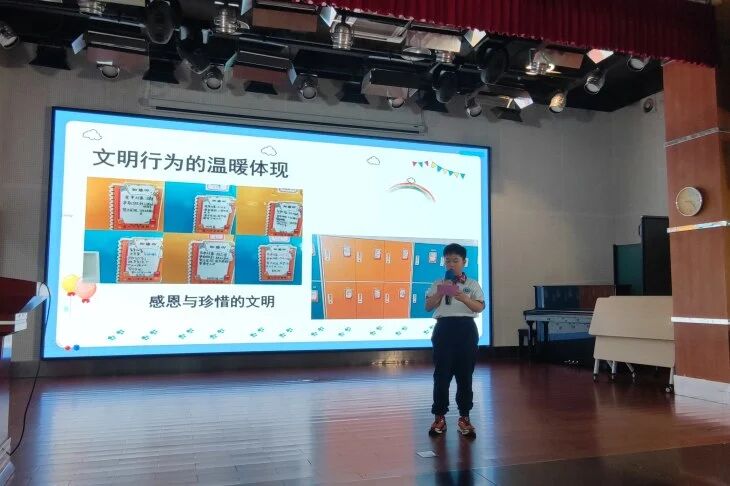 在二年级的集会上,学生们用多样的节目形式生动地展现了校园、家庭、社会礼仪之美,“文明小乘客”表彰环节更是点燃学子向优看齐的热情。这场集会以鲜活形式强化文明认知,推动雅言雅行融入日常,为新学期成长注入礼仪力量。
