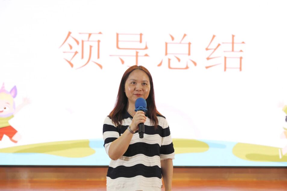 聂芹副主任对年级集会做了总结发言。对活动的有序组织和高质量节目给予了高度评价,并强调了习惯养成的重要性,同时也指出了需要改进的地方,提醒同学们课间休息要注意安全,要爱护公物,爱护图书,学校每月将会选出好习惯之星,进行表彰,对同学们寄予了厚望。