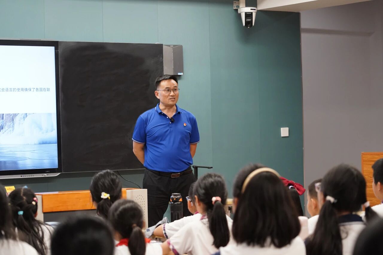 会议伊始,方建军校长以宏阔的历史视角,深入浅出地阐述了联合国的建立背景与“维持国际和平与安全、促进全球发展、保障人权”的崇高宗旨,并清晰梳理了其主要机构的运行机制。他将复杂的国际政治体系生动地呈现在同学们面前,为大家打开了一扇通往世界舞台的窗口。