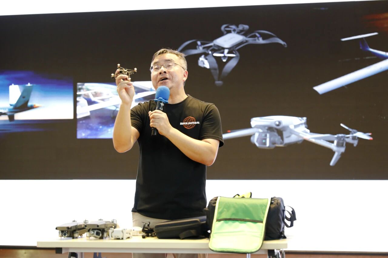 活动伊始,一场精彩的地理科普讲座在学校礼堂拉开帷幕。讲座由广东省科学院广州地理研究所的唐光良高级工程师主讲,唐老师以地理空间智能、无人机等前沿领域为核心,通过生动的案例与图文,将抽象的地理知识具象化,引导学生们深入思考地理的空间关系。除了图文案例,唐老师还给同学们展示了不同类型、不同大小的无人机,如仿生无人机,极大地激发了同学们的兴趣与热情。唐老师通过介绍卫星导航定位系统的发展激励孩子们奋发图强,为祖国的发展添砖加瓦。唐老师说道:“如果我们无法站在巨人的肩膀上,我们就努力成为巨人”。可见,这次讲座不仅是知识科普,更是一次绝佳的爱国主义教育。