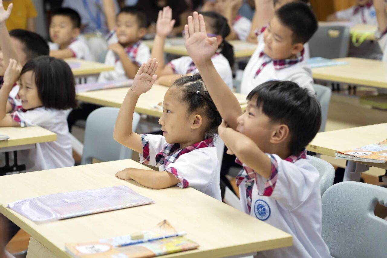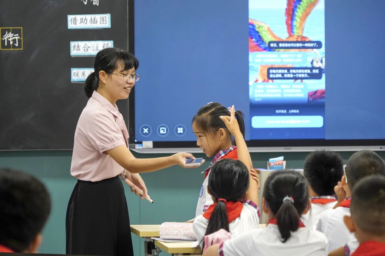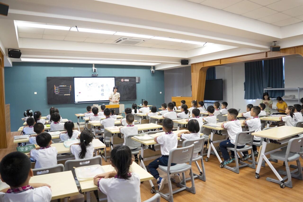 一年级是开蒙启智的关键时期,语文教师刘安旎老师以“中华文化小使者”为情境,引入AI人物“国学小子”,串联“识字”“诵读”“写字”三大挑战,带领一年级2班的同学一起探索《对韵歌》的自然之美、韵律之美,整节课国学氛围浓厚。