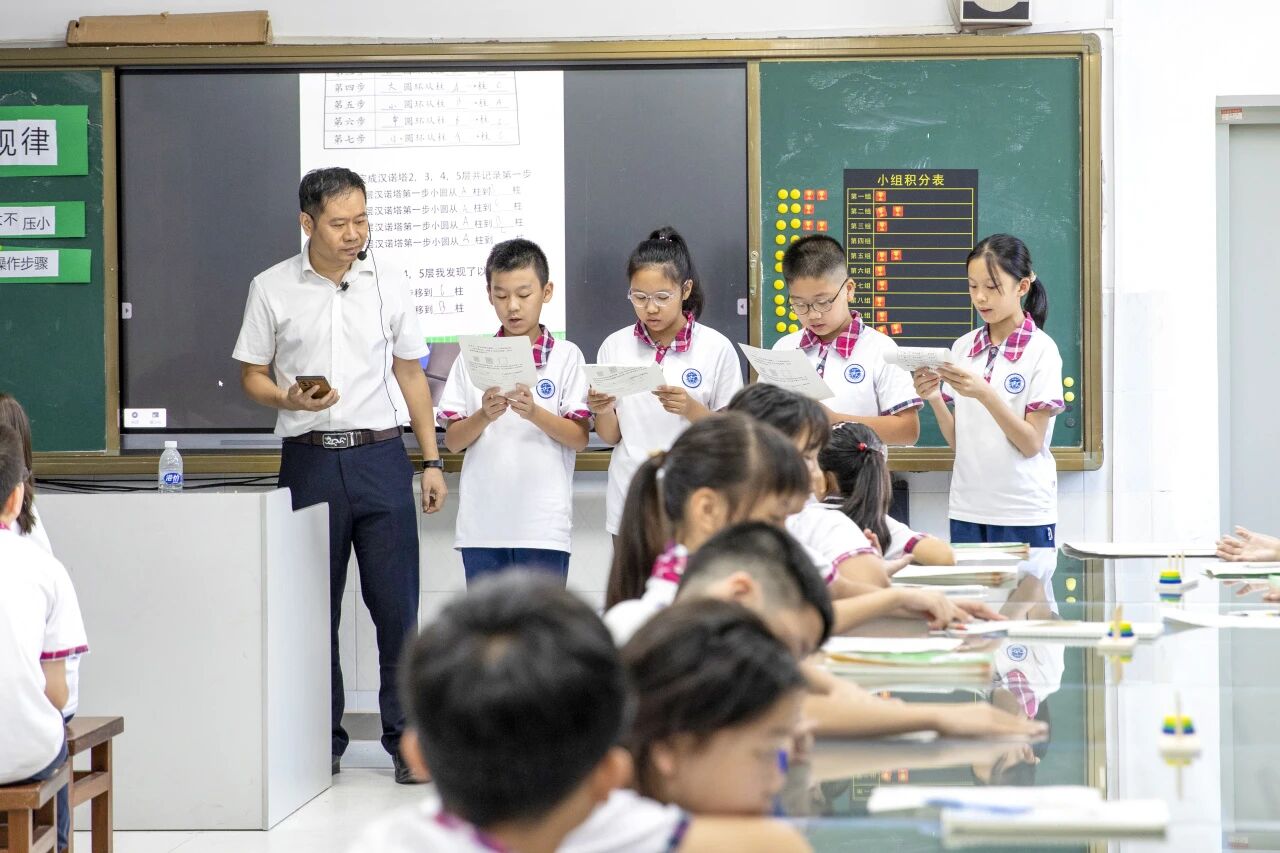 伍毅老师以五年级信息科技“算法启蒙”模块为核心,呈现了《游戏体验寻规律》公开课,聚焦汉诺塔游戏,落实信息意识、计算思维等核心素养。整堂课践行“做中学”教学理念,通过实物与数字化工具协同、小组合作与多元评价结合,让学生在体验中掌握规律,也为新教师提供了“算法启蒙”教学的实践范例。