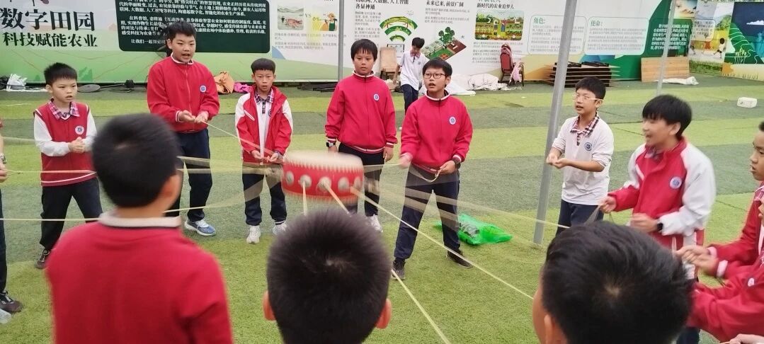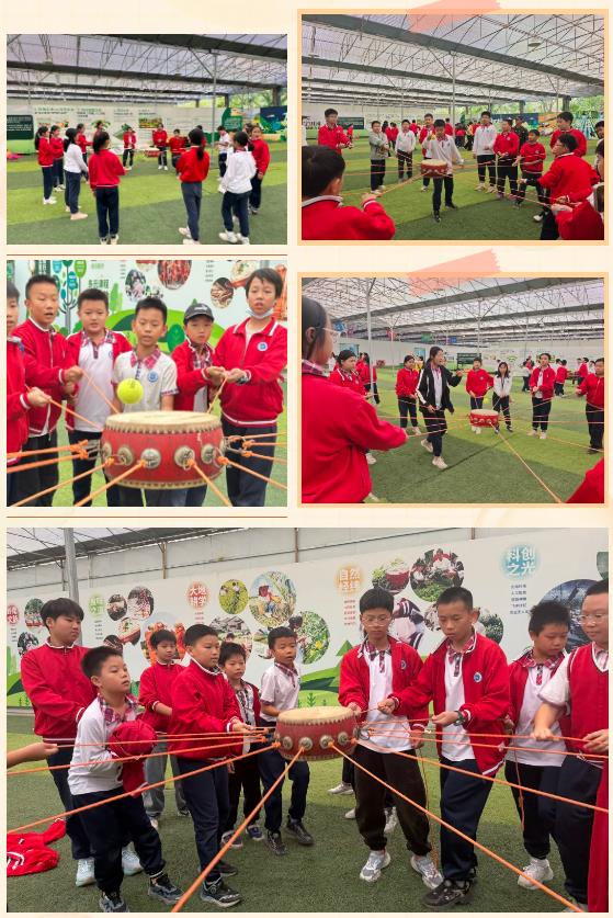 紧接着,击鼓颠球游戏将现场的气氛推向了欢乐的高潮。学生们分组围站在大鼓旁,眼神中充满了坚定和期待。他们齐心协力,共同控制着鼓面,让球不断颠起。每一次球的弹起,都伴随着一阵欢呼和鼓励;每一次球的掉落,都换来大家相互的安慰和重新开始的决心。在紧张激烈的比赛中,各小组不断调整策略,力求创造连续颠球的新纪录。这一活动不仅锻炼了学生们的团队协作能力,更激发了他们内心深处的竞争意识和集体荣誉感,让他们明白,只有团结一心,才能战胜困难,取得胜利。
