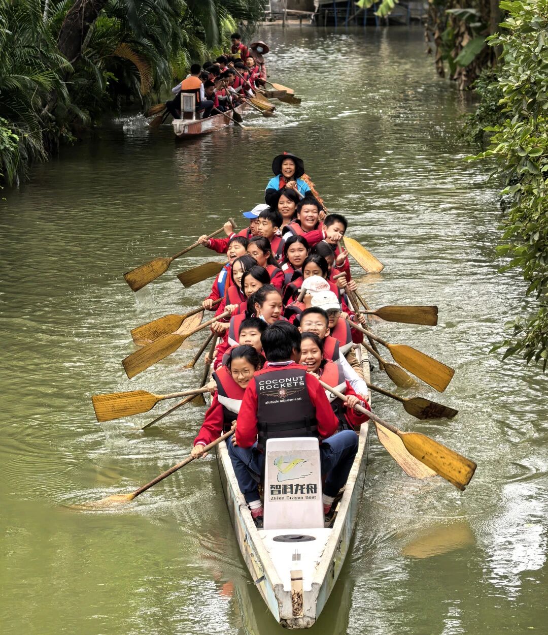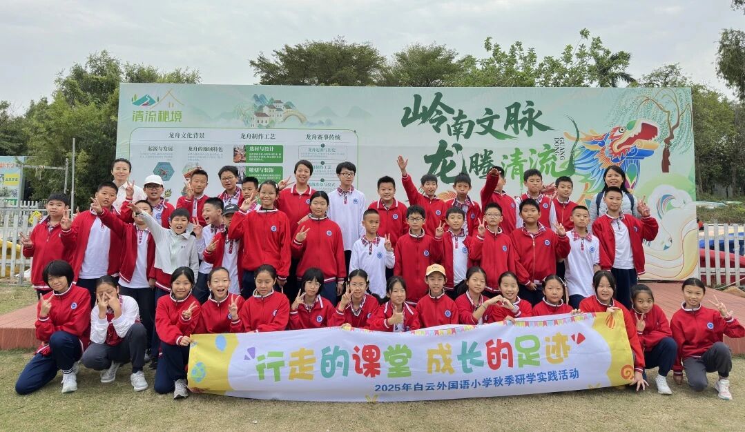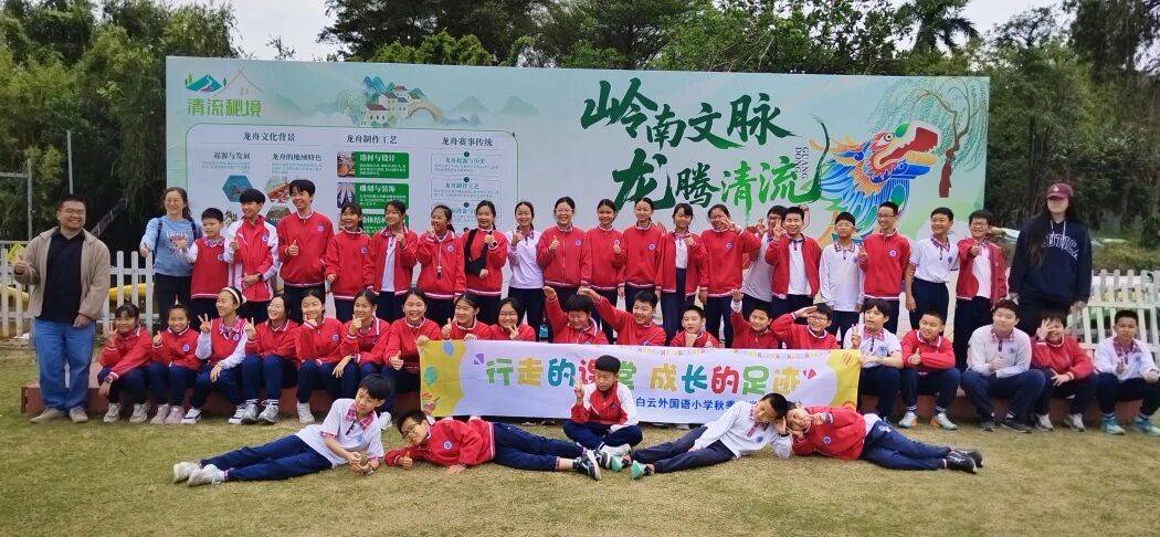 与自然亲密接触,与同伴快乐协作。11月18日,白云外国语小学六年级全体同学一路向南,奔向研学实践目的地——番禺清流秘境研学基地。学校严格筛选了活动项目以及细致筹备安排活动环节,将传统龙舟文化的深厚底蕴、趣味团队协作游戏的欢声笑语、新兴陆地冰壶运动的智慧碰撞、野外生存技能的实用探索以及丛林探险挑战的勇气考验巧妙融合,为学生们打造了一场集文化体验、团队协作、体育竞技与自然探索于一体的综合研学盛宴。