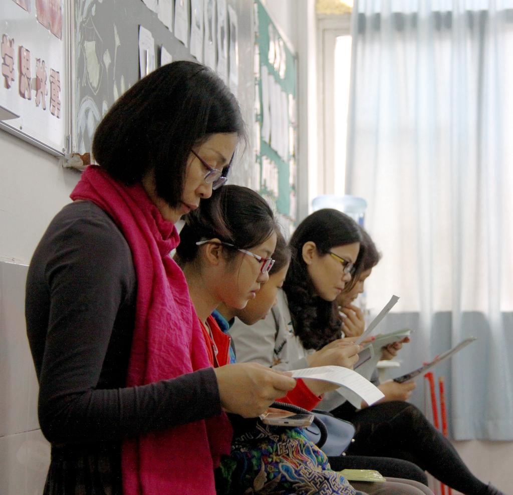 为了不到扰课堂,家长们都徘徊在走廊静静观看