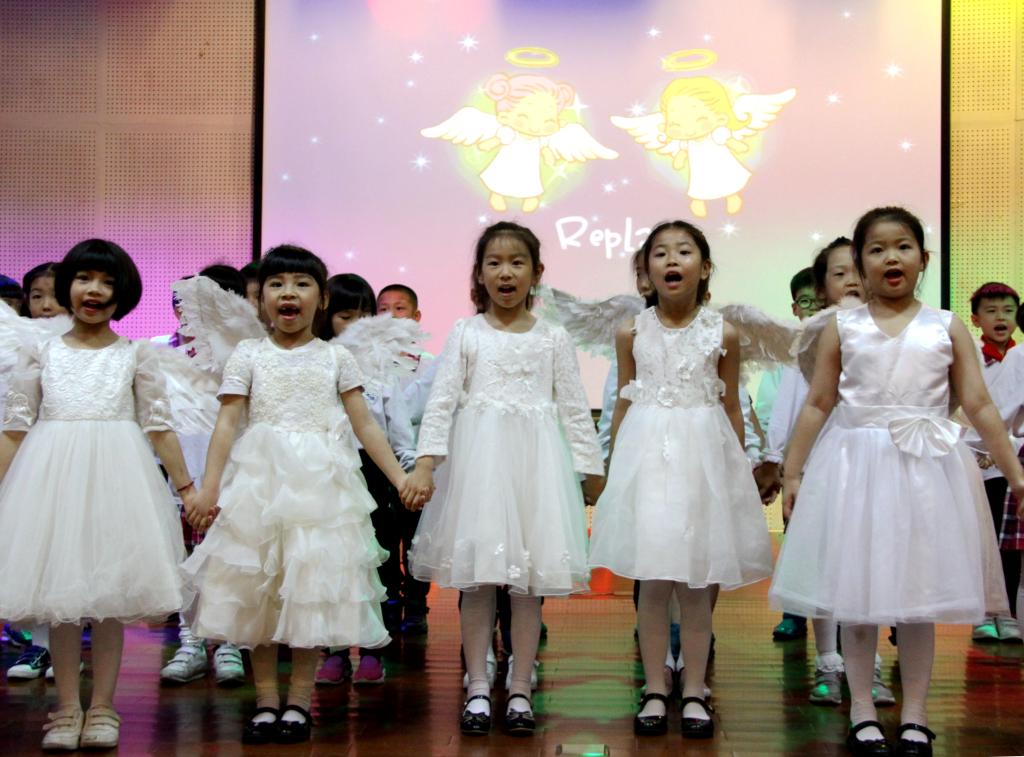 一年级的同学们为大家带来《文明礼仪歌》、英文歌等节目