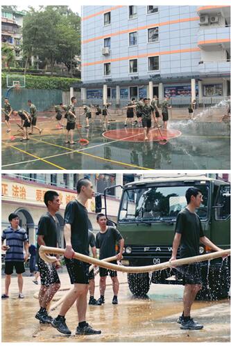 面对这场暴雨,我们一边积极面对、迅速协调,面对这场突如其来的大暴雨,子弟兵在群众最需要的地方,给予了最及时的援助。6月5日7:50,五星红旗冉冉升起,在官兵、家长、学校中层干部和清洁工周日的清洗后,一如往日干净的校园迎来新一周。