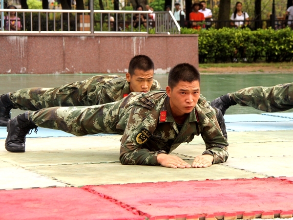 武警教官摔擒表演