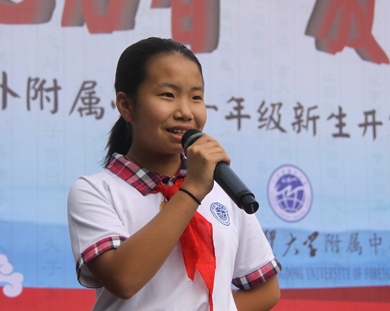 六2班顾恒嫣同学带领一年级学生作新生宣言