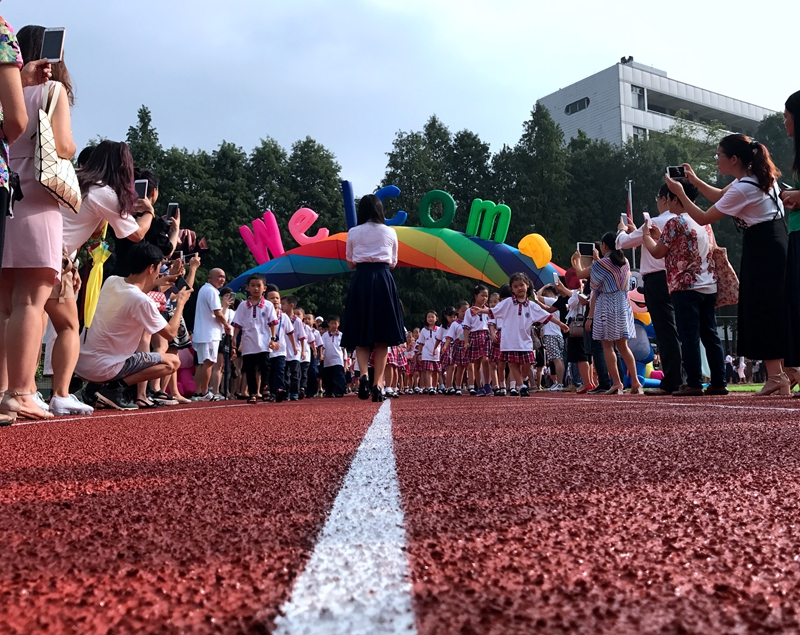 开笔礼是中国传统中对少儿开始识字习礼的一种启蒙教育形式,是古代读书人成长过程的首次大礼,经过开笔礼,才可以入学堂读书。上午8:30,开笔礼正式开始,同学们沿着跑道,有序地穿过彩虹拱门,平步青云。
