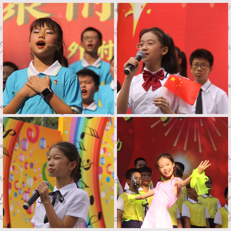 我们是一个个小太阳,拥有七色光芒,照亮七彩梦想。一6班《七色光》的合唱活泼,温暖。黑黑的天空低垂,亮亮的繁星相随,一3班孩子们的《虫儿飞》就像美丽的繁星,双眼闪烁着明亮的光芒。我们整装待发,我们服从命令,我们乘风破浪,一1班的《启航的小水兵》开始启航了。童年是一首诗,充满了美好的憧憬;童年是一幅画,描绘着多彩的世界。一4班的《金色童年》把童年的诗和画,献给祖国的68华诞。小蝌蚪,细尾巴,身子黑,脑袋大;水里生,水里长,长着长着就变啦!一2班的《尾巴去哪了》,去哪儿了?背上新书包,来到新学校,小朋友齐欢笑,一5班的《小朋友爱祖国》歌唱祖国更美好。