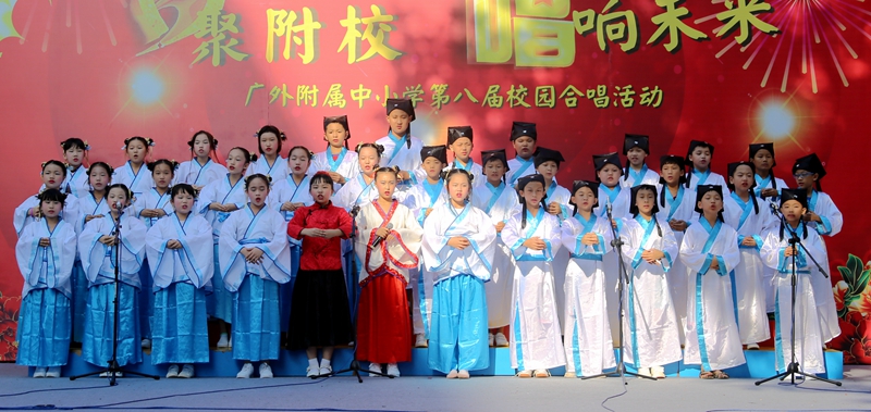 月亮在云朵中穿行着,五2班的《听妈妈讲那过去的故事》里,妈妈在谷堆旁给我们讲述她童年时的欢声笑语。五1班的《大中国》,是一个美丽的大中国,我们可爱的家,我要永远伴随她。五3班的《中华孝道》告诉我们,百善孝为先,孝敬是根本,天地恩情永难忘。五5班的《这是最好的未来》,每一个人都有权利期待,每个梦想都值得灌溉,这是最好的未来。五4班的《众人划浆开大船》的歌声也告诉我们,力量从团结来,智慧从学习来,行动从思想来,荣誉从集体来。